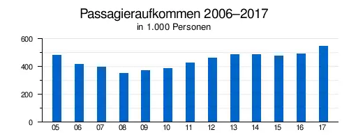 | Jahr | Fluggastaufkommen | Luftfracht (Tonnen) | Flugbewegungen (mit Militär) |