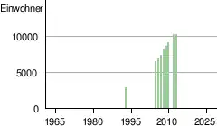 Nach einer Berechnung für das Jahr 2013 leben dort etwa 10.104 Einwohner, das Ergebnis der letzten veröffentlichten Volkszählung von 1993 betrug 2751.[1]