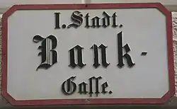 An der Bankgasse befindet sich das erste monumentale Barockportal Wiens, das Martinelli 1698 begann und 1705 vollendete.