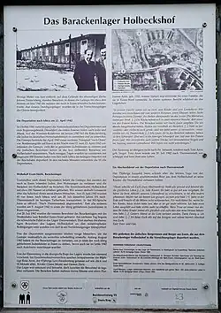 - Gedenktafel „Barackenlager Holbeckshof“ (395 KB) im Historischen Portal Essen