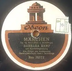 Barbara Kemp hinterließ Schallplatten der Marke Gramophone (Berlin 1913–15), Odeon (Berlin 1915–21), Electrola (Berlin 1927–28) sowie Parlophon (Berlin 1930).