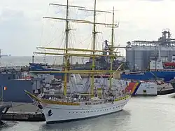- Statsraad Lehmkuhl, 1914 als Segelschulschiff Großherzog Friedrich August gebaut, Heimathafen: Bergen, Norwegen