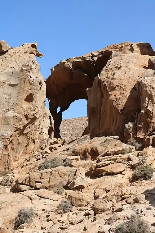 Etwas nördlich des Barrancos steht auf einer Anhöhe der Arco de las Peñitas.[6] Während der Wanderweg durch die Schlucht einfach begehbar ist, setzt der Abstecher zu dem Felsentor gute Trittsicherheit voraus. Das etwa acht mal fünf Meter große Tor gehört zu den geologischen Wahrzeichen Fuerteventuras.