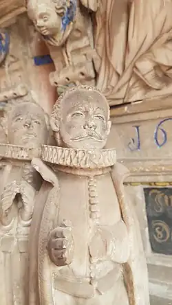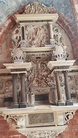 Das Epitaph und die in den Boden eingelassenen Grabplatten füllen eine eigene Kapelle, die mit einem Holzgitter aus der Zeit abgeschlossen ist. Mit Sicherheit befinden sich die sterblichen Überreste noch unter den Platten (Inv. Nr. 44). An der Decke hängt ein noch nachträglich bei Klintsch bestellter Engel.