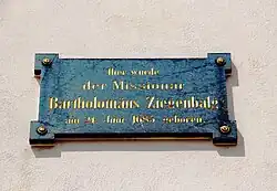 Bartholomäus Ziegenbalg (Tamil பர்த்தலோமேயு சீகன்பால்க்; * 10. Juli 1682 in Pulsnitz; † 23. Februar 1719 in Tranquebar) war ab 1706 der erste deutsche evangelische Missionar in Indien. Er kam mit der Dänisch-Halleschen Mission nach Südindien, erlernte die tamilische Sprache und übersetzte die Bibel, die als sogenannte Tranquebar-Bibel 1713 herauskam. Er gründete Schulen, ein Kinderheim und 1707 die erste evangelisch-lutherische Tamilgemeinde in Tranquebar, wo er auch die Neue Jerusalems-Kirche[1] erbauen ließ.