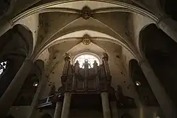 Als Besonderheit weisen die vordersten zwei Joche einen basilikalen Querschnitt auf. Die Seitenschiffe sind hier wesentlich niedriger; die großen Fenster sitzen direkt in der Hauptschiffwand über den Arkadenbögen. Von Außen sind diese beiden Joche gut an den gewaltigen Strebepfeilern und den Strebebögen erkennbar. Die Segmente des 7/10-Schlusses weisen die gleichen großen Fenster auf; der vordere Teil der Kirche ist dadurch wesentlich heller, als das übrige Langhaus. Im Vergleich zu anderen Kirchen der katalanischen Gotik gibt es hier also eine relativ deutliche Gliederung in einen helleren Chor (7/10-Schluss und vordere zwei Joche) und ein weniger helles Langhaus (die übrigen sieben Joche). An den 7/10-Schluss ist direkt ein Kapellenkranz angefügt; die Seitenschiffe enden beim vordersten Joch mit je einer kleinen Seitenapsis mit 5/8-Schluss. Zu beiden Seiten der Kirche sind hier beim vordersten Joch große Kapellenräume angefügt.