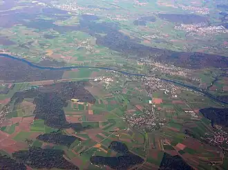 ![]() In der vorderen Bildmitte Basadingen, rechts Schlattingen und unmittelbar vor dem Hochrhein Diessenhofen