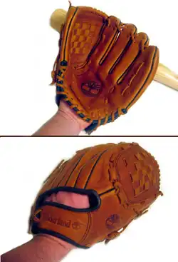 | First Baseman’s Mitts | Der Handschuh des First Baseman ist größer als der der anderen Infielder. Grund hierfür ist die Tatsache, dass der First Baseman einen Großteil der Würfe seiner Mitspieler fangen muss, um den Schlagmann an der ersten Base auszumachen. Der etwas größere Handschuh hilft vor allem, auch schlecht geworfene Bälle besser fangen zu können. |