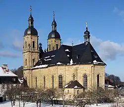 Nach dem Tod Lothar Franz von Schönborns 1729 und der Wahl seines Neffen Friedrich Carl von Schönborn wurde der Auftrag dem berühmten Balthasar Neumann (1687–1753) erteilt, dessen Plan auch ausgeführt wurde. Zuerst wurde unter seiner Leitung gearbeitet, später unter der Leitung von Johann Jakob Michael Küchel, welcher seit 1735 Neumanns Mitarbeiter im fürstbischöflichen Bauamt im Hochstift Bamberg war. Bei der Weihe der Kirche 1739, die im Beisein des Fürstbischofs stattfand, war der Bau noch lange nicht beendet. Selbst Hochaltar und Kanzel waren noch nicht vollendet, die übrigen Altäre nicht einmal begonnen.[11]