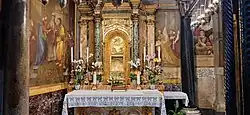 Vom Eingang aus links steht ein Nikolaus von Tolentino gewidmeter Altar, das neuere Altarbild ist als Mosaik ausgeführt. ist, mit dem Altarbild des Titulars in Mosaik neuerer Ausführung. Der Altar des Heiligen Geistes mit einem Altarbild in Öl auf Leinwand stellt das Pfingstfest dar. Das Werk stammt aus der ersten Hälfte des 17. Jahrhunderts und wird der Schule von Carracci zugeschrieben.