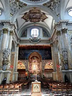 Zur Vergrößerung entwarf der Architekt Andrea Palladio um 1562 zunächst einen Zentralbau, baute in den Jahren 1578/79 letztlich allerdings einen klassischen Anbau mit quadratischem Grundriss der zwölf Meter Seitenmaß an der Nordseite der gotischen Kirche aus dem 15. Jahrhundert beanspruchte.[2] Vom Veroneseschüler Alessandro Maganza wurden um 1580 die Werke Jungfrau mit vier Evangelisten und die Taufe Christi geschaffen.