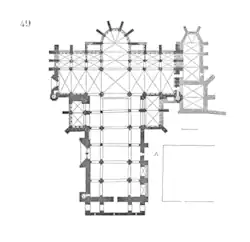 Die gotischen Teile im Osten sind mit Kreuzrippengewölben gedeckt und durch ihre großen Wandflächen ungleich heller als das Langhaus. Der Chor besteht aus einem querrechteckigen sechsfeldrigen Doppeljoch und einem 7/12 Polygon. An die beiden je drei querrechteckige Joche langen Arme des Querhauses schließt östlich eine Zeile von je drei Kapellen an, vertikal genauso hoch wie Chor und Querhaus, horizontal genauso tief und zweijochig wie der vordere Teil des Chors. Da die Trennwände zwischen den Kapellen nur bis in Höhe der Sohlbänke der Fenster reichen, hat auch der gotische Teil der Zeremonialbasilika eine Weiträumigkeit wie eine Hallenkirche. Unterhalb der Sohlbänke sind die Wände mit Blendmaßwerk geschmückt. Hierin knüpft der Kirchenbau an nordfranzösische Vorbilder wie in Paris Notre-Dame und die Sainte-Chapelle an. Platz für einen Umgangschor hatte man nicht, da der französische König Ludwig IX. nur die Überbauung von dreieinhalb Meter öffentlichen Straßenraums gestattete. Die beiden Fensterrosen des Querhauses sind leicht unterschiedlich gestaltet – bei derjenigen auf der Südseite sind auch noch die seitlichen und oberen Zwickel durchlichtet, was auf eine wenige Jahre jüngere Entstehungszeit hindeutet.
