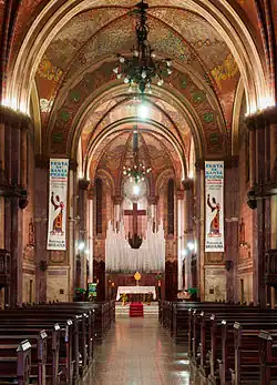Auf der Außenseite ist die St.-Iphigenia-Kirche mit zwei kleinen Türmen an der Eingangsfassade und einem hohen, massiven Vierungsturm ein Beispiel für eine neoromanische Architektur. Die Fassaden sind mit Rosetten und lombardischen Friesen verziert, die typisch für die mittelalterliche romanische Architektur sind. Der Zugang zum Innenraum erfolgt über ein Hauptportal mit mehreren Stufen perfekter Bögen, die ebenfalls neoromanischen Charakter haben. Die Wände und Gewölbe der einschiffigen Kreuzkirche sind mit mehrfarbigen, mittelalterlichen Gemälden verziert. Die drei Rosetten und die großen Fenster sind mit Buntglasfenstern aus Venedig verziert. Unter den Rosettenfenstern des Kirchenschiffs befindet sich jeweils ein Gemälde von Henri Bernard (um 1923), das die Heilige Familie und die Hochzeit zu Kana darstellt. Weitere Maler mit Werken im Inneren sind unter anderem Benedito Calixto und Carlos Oswald. Die Gewölbe des Innenraums werden von neogotischen Rippen getragen.[3] Das Kirchenschiff besitzt zwei aus Holz geschnitzte neugotische Kanzeln, die 1920 aus Frankreich importiert wurden. Die Reliefs zeigen die Heiligen Petrus und Paulus. Aus Deutschland wurde von Walcker 1921 eine Orgel geliefert.[4] Von dem 1924 geweihten Instrument wurde ein kleines Positiv anstelle des ehemaligen Hochaltars installiert und wird aktuell gespielt. Der Rest der Orgel befindet sich an seinem ursprünglichen Platz.