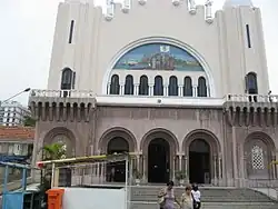 Die Kirche im neobyzantinischen Stil mit neoromanischen Anklängen erhielt eine Vierungskuppel auf einem Tambour, der Glockenturm erhebt sich rechts neben dem Chor. Das Innere der dreischiffigen Kirche ist reich verziert mit Buntglasfenstern, Mosaiken und farbigem Marmor, inspiriert durch den erneuernden Stil der Beuroner Kunstschule. Zwischen 1941 und 1942 wurde die Fassade von dem italienischen Architekten Ricardo Buffa umgestaltet, der auch den Hauptaltar entwarf.