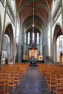 In der ersten Hälfte des 19. Jahrhunderts nahmen Besuche und Pilgerfahrten zu, die Eröffnung der Bahnstrecke zwischen Aachen und Lüttich mit der Haltestelle Chaudfontaine erhöhte ab 1863 die Zahl der Pilger und Touristen weiter.[4] Am 4. Mai 1874 pilgerten mehr als 20.000 Menschen nach Chèvremont, um für Papst Pius IX. zu beten, der den Kirchenstaat nach der italienischen Einigung von 1870 verloren hatte und sich als „Gefangener im Vatikan“ sah. Der Bischof von Lüttich Théodore de Montpellier nutzte die Gelegenheit, um die Errichtung eines Klosters auf dem Hügel zu starten. Er gab das Land an den Karmeliterorden, der die Pilger betreuen und eine angemessene Kirche bauen sollte. Nach Baubeginn 1877 konnten die Karmeliten 1878 ihr Kloster nach Plänen von Pierre Cuypers bereits vorläufig nutzen,[5] der langsame Kirchbau nach Plänen von Edmond Jamar kam zwischen 1882 und 1897 zum Stillstand. Anschließend wurde die dreischiffige Basilika mit Querhaus im neugotischen Stil in zwei Jahren fertiggestellt, der Turm wurde nur bis Dachhöhe erbaut. Der Lütticher Bischof Victor-Joseph Doutreloux weihte die Kirche am 8. September 1899,[5] dem Fest Mariä Geburt.