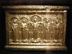 - ↑ Lucas Burkart: Politische Investitionen. Die Geschichte des Basler Münsterschatzes vom 11. Jh bis zur Reformation In: Historisches Museum Basel (Hrsg.): Der Basler Münsterschatz. Anlässlich der Ausstellung «Der Basler Münsterschatz». Christoph-Merian-Verlag, Basel 2001, S. 231–241, S. 241