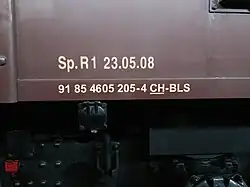 - Dritte Ziffer 5: Eigentümerin BLS Lötschbergbahn (BLS), ehemals BLS-Gruppe (BLS/BN/GBS/SEZ)