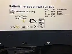 | R (vorne) | Triebwagen mit erhöhter Kurvengeschwindigkeit und vmax mindestens 110 km/h (nur bei Normalspur) |