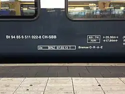 - ↑ 2009 erstmals angewendet für STmgmss-t 95 85 2720 901-8 CH-MARTI, siehe Schweizer Eisenbahnrevue 5/2009