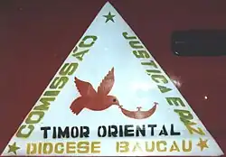 Die Gemeinden Osttimors haben keine gesetzlichen Symbole. Allerdings erklärt das Profil von Baucau von 2012 der Direksaun Nacional Administrasaun Local, dass während der indonesischen Besatzungszeit die Jackfrucht (Kulu Gisa) das Symbol Baucaus gewesen sei. Im unabhängigen Osttimor wurde das Heilige Haus (Uma Lulik) in Baucau zum Sinnbild der heutigen Gemeinde.[60] Die Kommission für Recht & Frieden der Diözese Baucau verwendet eine rote Taube auf weißem Grund, die eine Kaibauk im Schnabel trägt.
