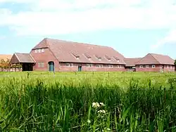- Deichstraße 160, dem verklinkerten Wohn- und Wirtschaftsgebäude mit Krüppelwalmdach und dahinter der Halle mit Satteldach.[7]