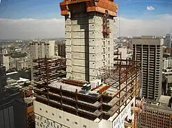 Der Bau begann im Jahr 1990, doch die Investoren stießen bald auf Probleme. Die Wirtschaft geriet in eine Rezession und die Büroleerstandsquote in Toronto stieg auf 20 %. Der Bau wurde 1993 gestoppt und nachdem bereits über 500 Millionen Dollar investiert worden waren, wurde das Projekt auf unbestimmte Zeit zurückgestellt.[2] Fertiggestellt wurden lediglich die Tiefgarage und mehrere Stockwerke des betonierten Versorgungsschachts, der ab 1991 als Denkmal für das gescheiterte Projekt in der Innenstadt von Toronto stand. Der Stumpf des Versorgungsschachts war dem Sicherheitsdienst und den Einheimischen als „The Bunker“ oder einfach „The Stump“ bekannt. Das Parkhaus war in Betrieb und der Gebäudestumpf selbst wurde als Werbefläche genutzt. 2006 wurde der Stumpf abgetragen.[3]
