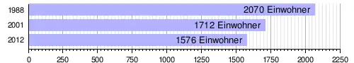 Im Hauptort lebten bei der Volkszählung 2012 1576 Einwohner in 275 Haushalten,[1] bei der Volkszählung 2001 1712 in 276 Haushalten[5] und bei der Volkszählung 1988 2070 in 391 Haushalten.[6]