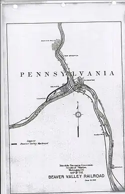 Am 17. September 1884 wurde die Beaver Valley Street Railway Company gegründet, die am 4. Juli 1885 eine Pferdebahn von Beaver Falls nach New Brighton eröffnete. Die Beaver Valley Traction Company wurde am 29. Juni 1891 gegründet, kaufte die Pferdebahn und elektrifizierte sie. Am 5. Dezember 1891 wurde der elektrische Betrieb aufgenommen und die Strecke bis Beaver verlängert. Unterdessen wurde 1891 die People's Electric Street Railway gegründet, die am 13. August des Jahres eine elektrische Straßenbahn von Rochester nach Freedom eröffnete. Die Riverview Electric Street Railway baute eine Strecke vom Zentrum New Brightons nach Beaver Falls. Diese Strecke lag am östlichen Ufer des Beaver River, während die Beaver Valley Street Railway am westlichen Ufer verlief. Eine kurze Zweigstrecke nach Monaca wurde am 31. Juli 1893 durch die College and Grandview Electric Street Railway Company eröffnet. Alle diese Straßenbahngesellschaften fusionierten am 1. Oktober 1900 zur Beaver Valley Traction Company. Das Netz war in der in Pennsylvania weit verbreiteten Spurweite von 5 Fuß 2½ Zoll (1588 Millimetern) gebaut und wurde mit 550 Volt Gleichstrom betrieben. Depot, Hauptsitz und Werkstatt der Bahn befanden sich in Rochester.
