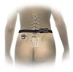 Es ist eine kleine Fernbedienung für den Patienten. Die Telemetrie erfolgt auf Hautkontakt direkt über der Stelle, wo der Neuromodulator implantiert wurde. Der Patient wird in der Anwendung geschult.[9]