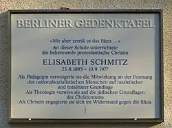 - ↑ Vgl. auch div. Literatur zu Elisabeth Schmitz, die 1935 an die Auguste-Sprengel-Schule in Berlin-Lankwitz versetzt wurde.