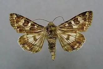 - ↑ G. Warnecke: Der Einflug der Melicleptria scutosa Schiff. (Lep. Noct.) im Jahre 1953 Entomologische Zeitschrift Frankfurt, 64, 1954