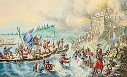 Monemvasia war die erste befestigte Stadt des Peloponnes, die am 23. JuliJul. bzw. 4. AugustGreg. 1821,[2][3] nach viermonatiger Belagerung,[4] in die Hände der Griechen fiel.[2][5]