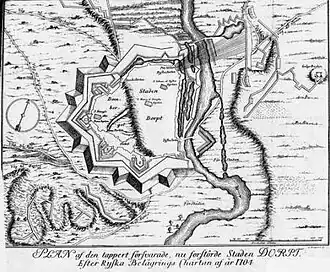 - ↑ von F. Bienemann: Die Katastrophe der Stadt Dorpat während des Nordischen Krieges, Reval 1902, S. 11f.