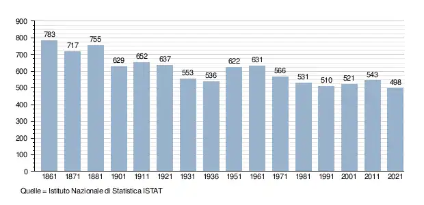 - ↑ Bilancio demografico e popolazione residente per sesso al 31 dicembre 2024. ISTAT. (Bevölkerungsstatistiken des Istituto Nazionale di Statistica, Stand 31. Dezember 2024).