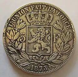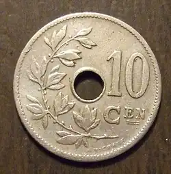 Bereits vor der Gründung des Staates Belgien im Jahr 1830 wurden in Brüssel zwischen 1814 und 1830 niederländische Münzen geprägt, die das Münzzeichen B trugen. Belgische Münzen wurde erst ab 1832 geprägt. Das belgische Münzsystem wurde nach dem Vorbild des französischen Münzsystems geschaffen. 100 Centimes entsprachen 1 Franken oder auf flämisch 100 Centiemen entsprachen 1 Frank. Der Belgische Franken konnte so im Verhältnis 1:1 an das französische Münzsystem und an das anderer Münzsysteme der Lateinischen Münzunion gekoppelt werden. Im weiteren Sinn gehörten auch die ab 1887 geprägten Münzen für Belgisch-Kongo zum Belgischen Münzsystem. Die ersten im Jahr 1832 für Belgien geprägten Münzen waren Nominale von 1 und 10 Centimes und 5 Franken. Ab 1833 wurden auch 2 und 5 Centimes sowie halbe und 1 Frankenmünzen geprägt. Ab 1834 folgten auch Viertel- und Zweifrankenmünzen. Centimesnominale wurden in Kupfer, die Werte von Viertel- bis Fünffranken in Silber geprägt. Ab 1849 wurden auch Goldmünzen im Wert von 10 und 25 Franken geprägt. Die Prägungen von 25 Franken wurden aber schon 1850 wieder aufgegeben. Stattdessen wurden ab 1862 Goldmünzen im Wert von 20 Franken geprägt. Die Viertel- und halben Franken, die nur zwischen 1833 und 1844, sowie 1849 und 1850 geprägt wurden, wichen den 20 Centimesmünzen (ab 1852, zunächst in Silber, ab 1860 in Kupfer-Nickel) und den 50 Centimesmünzen (ab 1866 in Silber). Zu Beginn des 20. Jahrhunderts wurden auch 5 und 25 Centimesmünzen mit Loch in der Mitte geprägt (siehe hier). Während der deutschen Besetzung im Ersten Weltkrieg gab es für Belgien Kleinmünzen aus Zink in fünf Nominalen (5, 10, 25 und 50 Centimes), die bis 1922 gültig blieben. Ab 1922 wurden die Münzen wieder in Kupfer-Nickel mit der kleinsten Nominale von 5 und 10 Centimes in Messing ausgegeben.