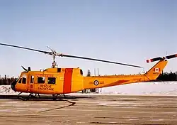- UH-1D mit 1000-kW-(1400-PS)-Lycoming-T53-L-13B-Turbine und Staurohr über der Kabine. Ab 1967 wurde die Produktion auf die UH-1H umgestellt, von der fast 8000 Stück für die U.S. Army (4850) und andere Abnehmer (oft auch in Lizenz) gebaut wurden. Von diesem Modell wurden bei Dornier 358 Stück[8] in Lizenz für die Bundeswehr gebaut, von denen der Bundesgrenzschutz sechs Stück für „Führung und Einsatz“ erhielt. Sie werden im Heer und der Luftwaffe verwendet und dienten dort auch in der Luftrettung als Such- und Rettungshubschrauber und im Katastrophenschutz.[9]