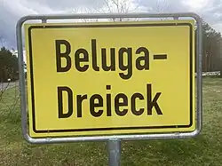 Den Namen Beluga-Dreieck bekam dieser Ort 2015 bei der ersten Widerstandspartie durch Aktivisten der Bürgerinitiative Umweltschutz Lüchow-Dannenberg. Es sollte ein selbsternannter Ort werden, denn bis dahin verabredete man sich notgedrungen „an den Atomanlagen“. 2022 bekam das Beluga-Dreieck ein symbolisches Ortsschild.[2]