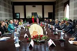 - ↑ Präsident José Ramos-Horta: Funsionáriu Presidensia da Repúblika hamutuk na’in-116 kompostu feto nain-41 no Mane na’in-75 ofisialmente simu Prezidente Repúblika Dr. José Ramos-Horta ne’ebé akompaña hosi Xefe Kaza Sivil, Bendito dos Santos Freitas hodi hala’o knaar iha Palasiu Prezidensiál Dili, Segunda (23/05/22), abgerufen am 6. Juni 2022.