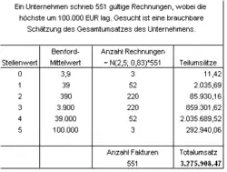 Zwar wird die tatsächliche Verteilung der Fakturenbeträge immer nur zufällig mit jener der Schätzung übereinstimmen, die Summe aller Schätzfehler je Stellenwert kompensiert sich jedoch fast immer auf einen eher kleinen Betrag.