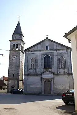 Die gotische Pfarrkirche Sankt Martin wurde im Jahr 1431 erbaut. Davon zeugt die glagolitische Inschrift auf dem Taufstein.[14] Im Jahr 1910 wurde die katholische Kirche, wie sie heute besteht, zusammen mit den Überresten der mittelalterlichen Kirche, bestehend aus einem kleinen Schiff und einer Apsis, errichtet und somit um ein neues Schiff erweitert.[15] Das ist durch eine Inschrift in der Fassade dokumentiert. Daher besteht der Hauptbau der Kirche im Wesentlichen aus zwei Teilen; dem gotischen Sanktuarium – als älterer Teil hinter dem Altar – und dem neueren Teil (Langhaus) davor.[3] Dabei wird das Schiff des älteren Teils heute als Altarraum und die Apsis als Sakristei genutzt.[15]