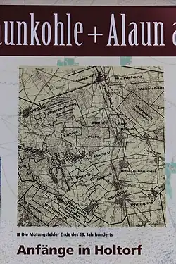 Im Ennert und im Hügelland weiter östlich, Holtorfer Hardt, wurden bereits um 1800 Braunkohle über Tage abgebaut, später wurde auch Schwefelkies für die Produktion von Alaun durch Leopold Bleibtreu (1777–1839)[2] und Mathias Jaeger. 1816 wurde der evangelische Friedhof in Holzlar erweitert, um Raum für die verstorbenen Bergleute und Arbeiter der Alaunsieden zu schaffen.[3] Ab 1835 wurde im Bereich von Hoholz, Oberholtorf und Vinxel auch im Untertagebetrieb Braunkohle abgebaut. Die jährliche Gesamtförderung lag bei etwa 50.000 Tonnen.[1]