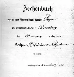- ↑ Hermann Brassert (Hrsg.), Heinrich von Achenbach (Hrsg.): Zeitschrift für Bergrecht. Sechster Jahrgang, bei Adolph Marcus, Bonn 1865, S 431, 432.