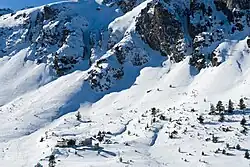 - Slija Sab (bulg. Злия зъб; wörtlich: Böser Zahn): hier ist eine der bekanntesten Kletterrouten Bulgariens – „Weschdite“ (bulg. Веждите), mit einer 200 m hohen Wand.[6]