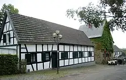 - ↑ a b Aushängetafel des Bergischen Geschichtsvereins Rhein-Berg e. V. am Hauptgebäude.