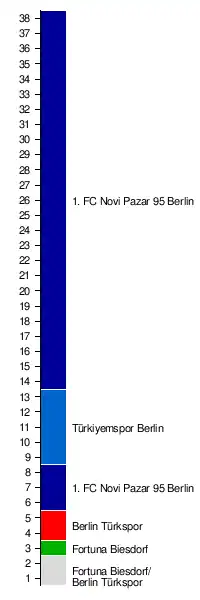 | 19. | 1. FC Novi Pazar 95 Berlin | 0:3 | 1:4 | 0:2 | 0:5 | 0:3 | 1:4 | 0:5 | 0:2 1 | 0:2 | 1:1 | 0:0 | 2:3 | 0:10 | 0:3 | 1:3 | 0:5 | 0:4 | 3:1 | |