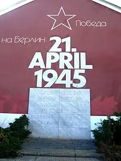 Im Kampf um Berlin überschritt die 5. Stoßarmee am 21. April 1945 als erste sowjetische Einheit in Marzahn die Stadtgrenze. Ihrem Befehlshaber, Generaloberst Nikolai Erastowitsch Bersarin, fiel damit nach russischer Militärtradition das Amt des Stadtkommandanten zu. An diesen Tag erinnert ein Giebelbild an der Landsberger Allee.