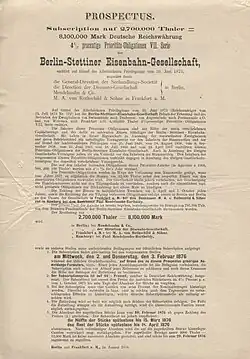 Prospekt der 1876er Obligationen der Berlin-Stettiner Eisenbahn-Gesellschaft