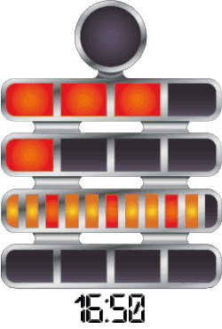 Entgegen der Aussage „Die erste Uhr der Welt, die nach dem Prinzip der Mengenlehre funktioniert“ auf dem offiziellen Prospekt der Binninger BERLIN-UHR GmbH für das Tischmodell hat die Uhr nichts mit der Mengenlehre zu tun. Die Anzeige der Zeit erfolgt in einem Stellenwertsystem zur Basis 5. Die Stunden und Minuten werden durch leuchtende Segmente in vier waagerecht untereinander angeordneten Streifen dargestellt. In der ersten, zweiten und vierten Zeile sind vier und in der dritten elf Leuchten angebracht. Die ersten beiden Zeilen zeigen mit roten Leuchten die Stunde an, wobei im oberen Streifen ein leuchtendes Segment für fünf Stunden und im unteren für eine Stunde steht. Die aktuelle Stunde ergibt sich aus der Addition der Werte. Entsprechend werden in den beiden unteren Zeilen die Minuten mit gelben Segmenten in Fünfer- und Einerschritten angezeigt. Die Leuchten für 15, 30 und 45 Minuten sind zur besseren Ablesbarkeit rot. Über den Zeilen befindet sich ein rundes Blinklicht, das im Sekundentakt ein- oder ausgeschaltet wird.