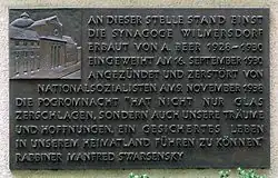Der Bezirk hatte in der Zeit der Weimarer Republik einen starken jüdischen Bevölkerungsanteil; 1933 betrug er 13,5 %. Bei den Gymnasialschülern waren 30 % jüdischen Glaubens, es gab fünf jüdische Privatschulen. Viele bekannte Künstler und Schriftsteller wohnten in Wilmersdorf, unter anderen George Grosz, Egon Erwin Kisch, Heinrich Mann, Anna Seghers und Arnold Zweig. An den 1922 in der Koenigsallee in Grunewald von Rechtsradikalen ermordeten Reichsaußenminister Walter Rathenau erinnert dort ein Gedenkstein. Die jüdische Gemeinde hielt ihre Gottesdienste zunächst in Privatsynagogen ab; 1929 wurde in der Prinzregentenstraße eine große Gemeindesynagoge errichtet, die 2300 Besuchern Platz bot. Das Gebäude wurde während der Novemberpogrome vom 9. zum 10. November 1938 von SA-Trupps teilweise zerstört, die Reste des Gebäudes wurden 1958 abgetragen. An den heute hier befindlichen Wohnhäusern erinnert eine Gedenktafel an die Wilmersdorfer Synagoge.