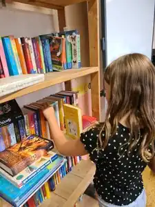 - Kinderbuchregal mit Kinder- und Jugendbüchern sowie Brettspielen in Neukölln-Rixdorf, Richardstr 83